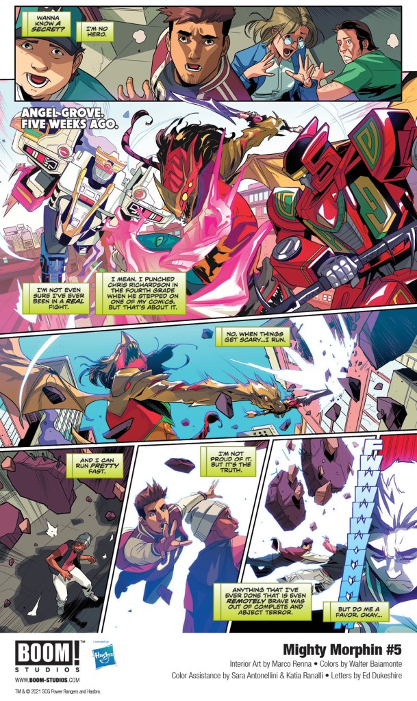 BOOM! Studios, under license by Hasbro, Inc. (NASDAQ: HAS), revealed a first look at MIGHTY MORPHIN #5, from writer Ryan Parrott (Mighty Morphin Power Rangers/Teenage Mutant Ninja Turtles), artist Marco Renna, colorist Walter Baiamonte with assistance by Katia Ranalli and Sara Antonellini, and letterer Ed Dukeshire, the exciting next issue in the ERA OF UNLIMITED POWER.