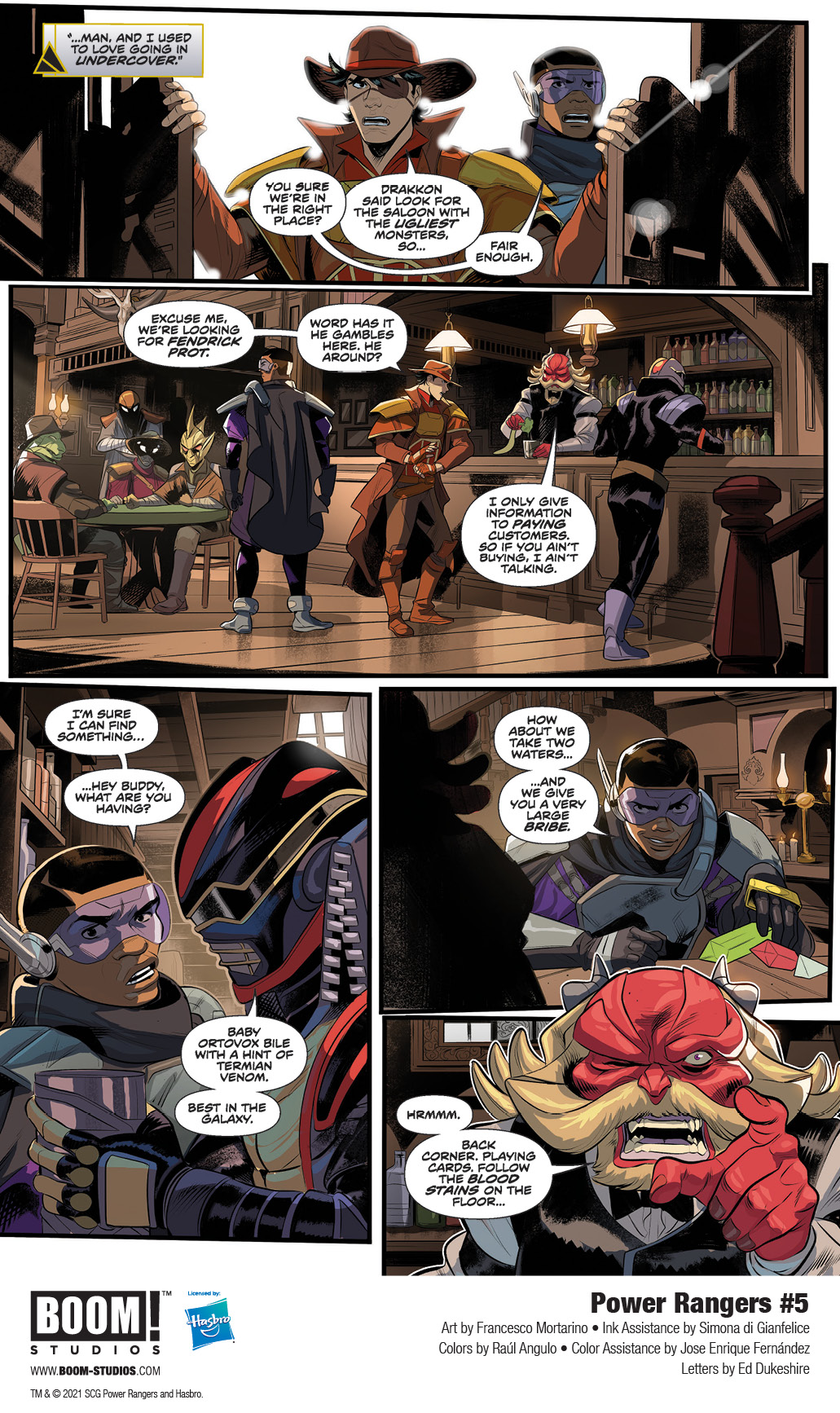 Print copies of POWER RANGERS #5 will be available on March 24, 2021 exclusively at local comic book shops (use comicshoplocator.com to find the one nearest you), or at the BOOM! Studios webstore. Digital copies can be purchased from content providers like comiXology, iBooks, Google Play, and Madefire.