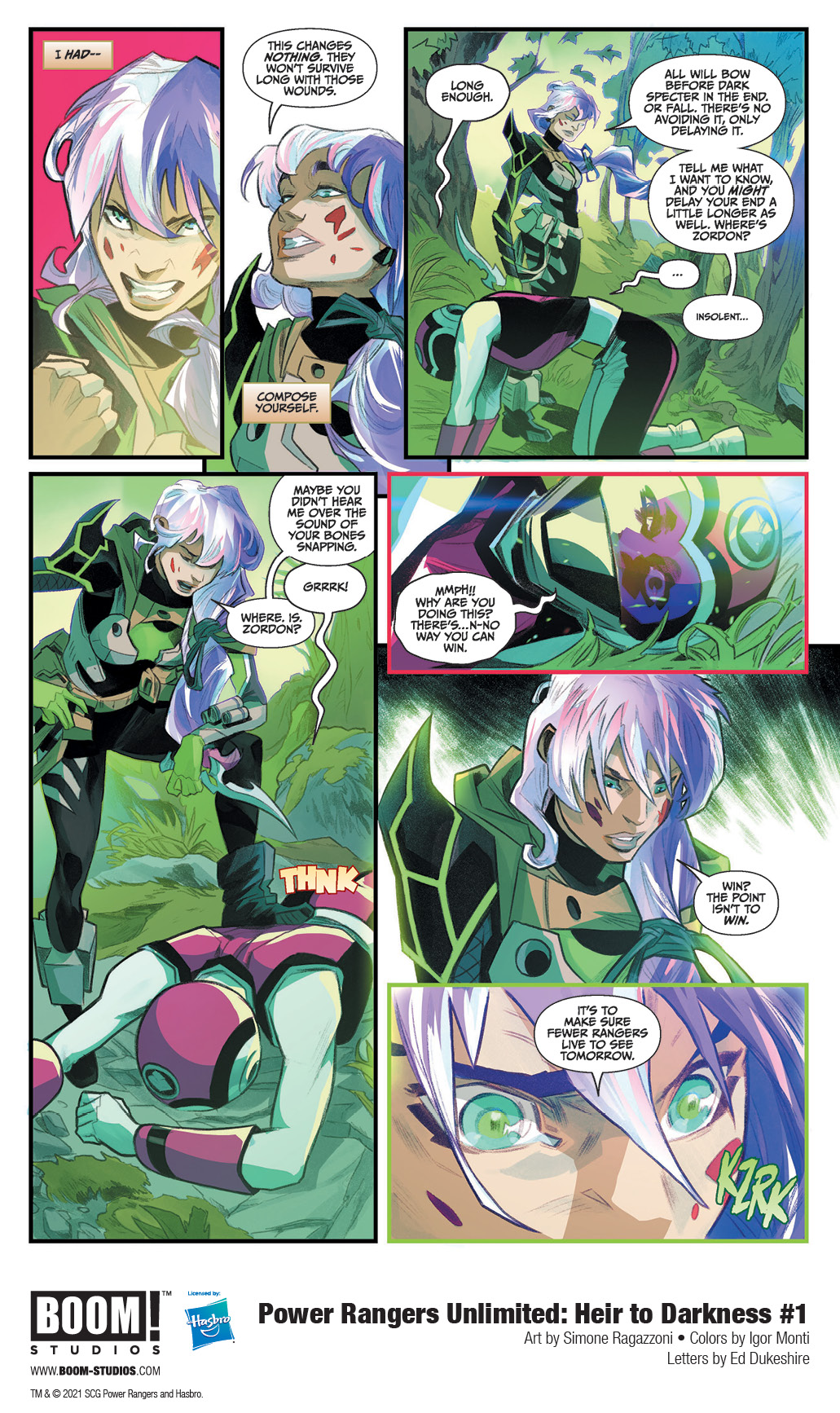 BOOM! Studios, under license by Hasbro, Inc. (NASDAQ: HAS), today revealed a first look at the brand new oversized special issue, POWER RANGERS UNLIMITED: HEIR TO DARKNESS #1, as acclaimed author L.L. McKinney (A Blade So Black), artist Simone Ragazzoni (Power Rangers: Drakkon New Dawn), colorist Igor Monti (Mighty Morphin Power Rangers), and letterer Ed Dukeshire (Once & Future) present a powerful new story that no Power Rangers fan can miss in March 2021.