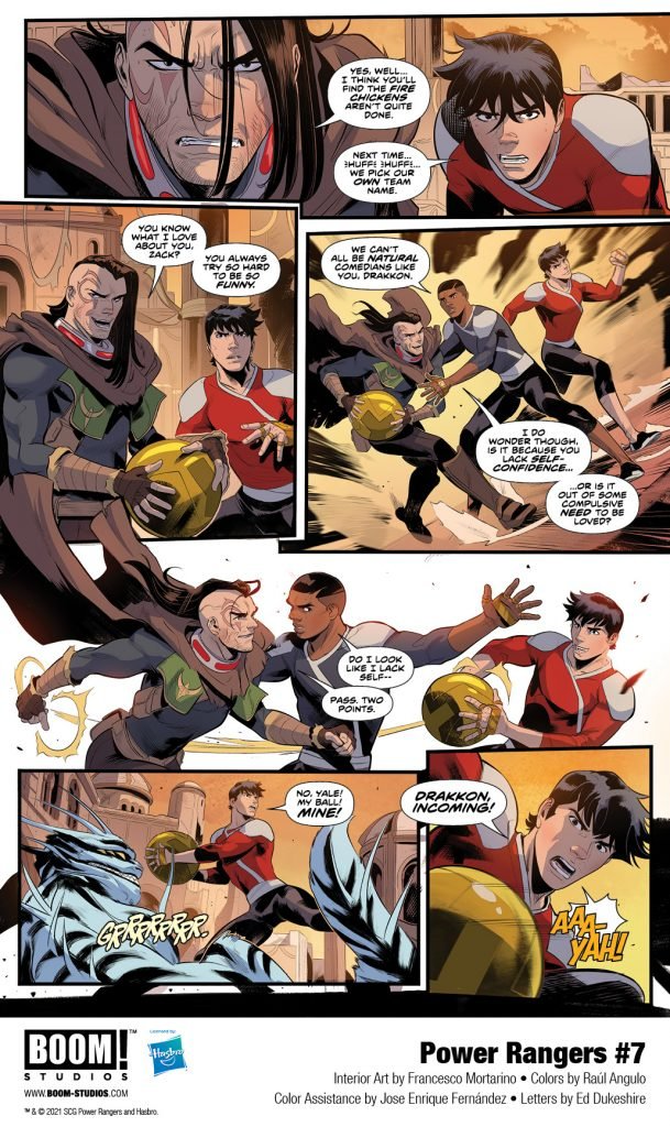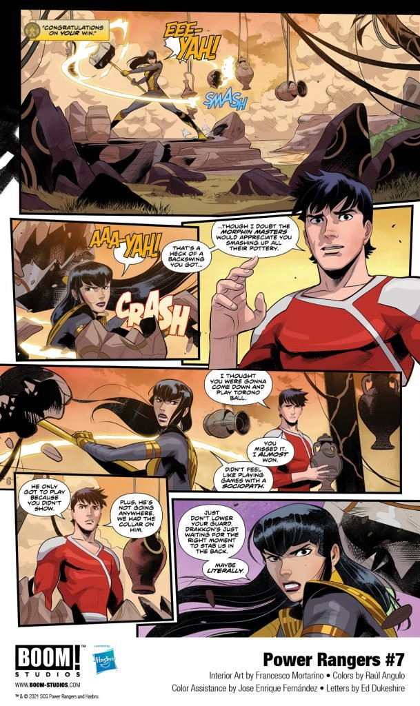 BOOM! Studios, under license by Hasbro, Inc. (NASDAQ: HAS), revealed today a first look at POWER RANGERS #7 from superstar writer Ryan Parrott (Mighty Morphin Power Rangers/Teenage Mutant Ninja Turtles), acclaimed artist Francesco Mortarino (Firefly: The Sting), colorists Raúl Angulo (Buffy the Vampire Slayer) and Jose Enrique Fernández (Mega Man: Fully Charged), and letterer Ed Dukeshire (Once & Future), in conjunction with the Mighty Morphinseries. Two New Series. Two New Teams. The Era of UNLIMITED POWER continues HERE—and only Lord Drakkon, their greatest enemy, can save the Power Rangers in May 2021!