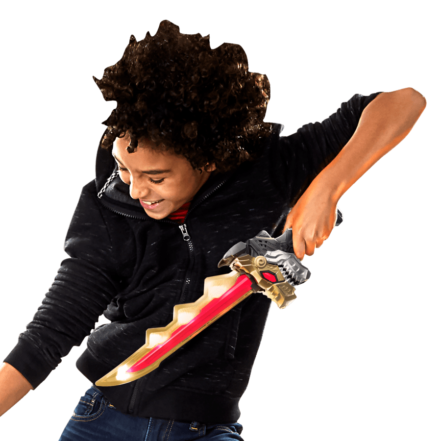 The CHROMAFURY SABER has color-scanning technology, color-changing LEDs, and motion-activated light and sound effects that lets kids and fans imagine leaping into action as their favorite Ranger. Press the button on the hilt of the CHROMAFURY SABER and place the end of the hilt on a surface to scan the color. Scan something red to make the LEDs in the blade light up red, like the saber of the Red Ranger! Or scan something pink for a pink blade! Or blue for blue! Scans aren’t limited to Ranger colors: scan orange for an orange blade!