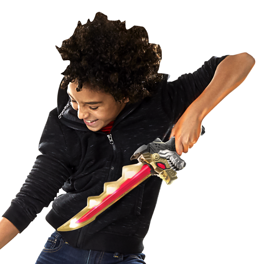 The CHROMAFURY SABER has color-scanning technology, color-changing LEDs, and motion-activated light and sound effects that lets kids and fans imagine leaping into action as their favorite Ranger. Press the button on the hilt of the CHROMAFURY SABER and place the end of the hilt on a surface to scan the color. Scan something red to make the LEDs in the blade light up red, like the saber of the Red Ranger! Or scan something pink for a pink blade! Or blue for blue! Scans aren’t limited to Ranger colors: scan orange for an orange blade!