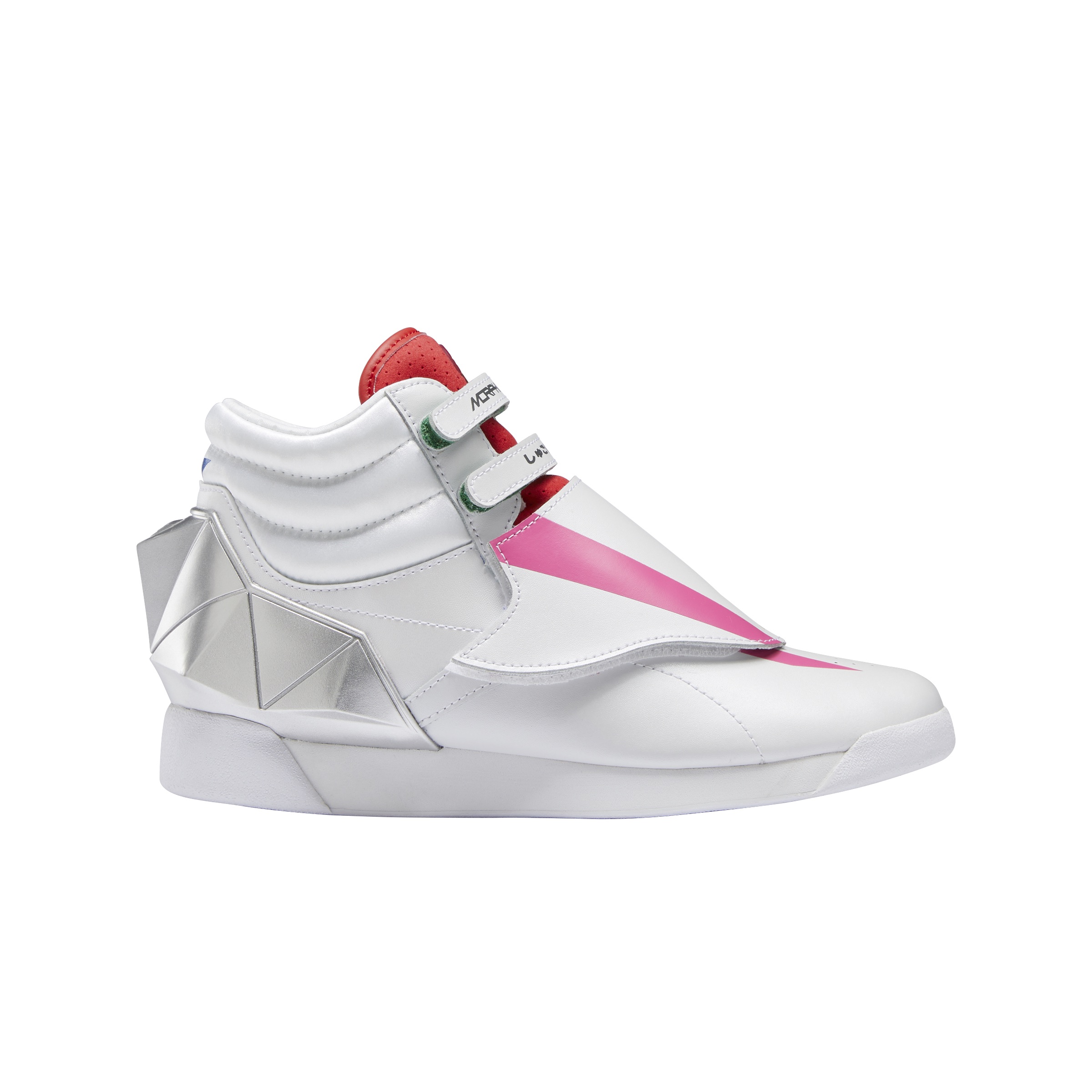 • Freestyle Hi Pink Ranger ($120) – Reebok’s Freestyle Hi, the first workout shoe made exclusively for women, is the perfect silhouette to represent the Pink Ranger, known for promoting individual empowerment and investing in others by teaching aerobics at her community center. The shoe also incorporates pink stripes down the front of the upper that make reference to the Pterodactyl Zord, as well as a green broken heart on the inside strap that alludes to the Pink Ranger’s relationship with the Green Ranger. Available in women’s, grade school and preschool sizing.