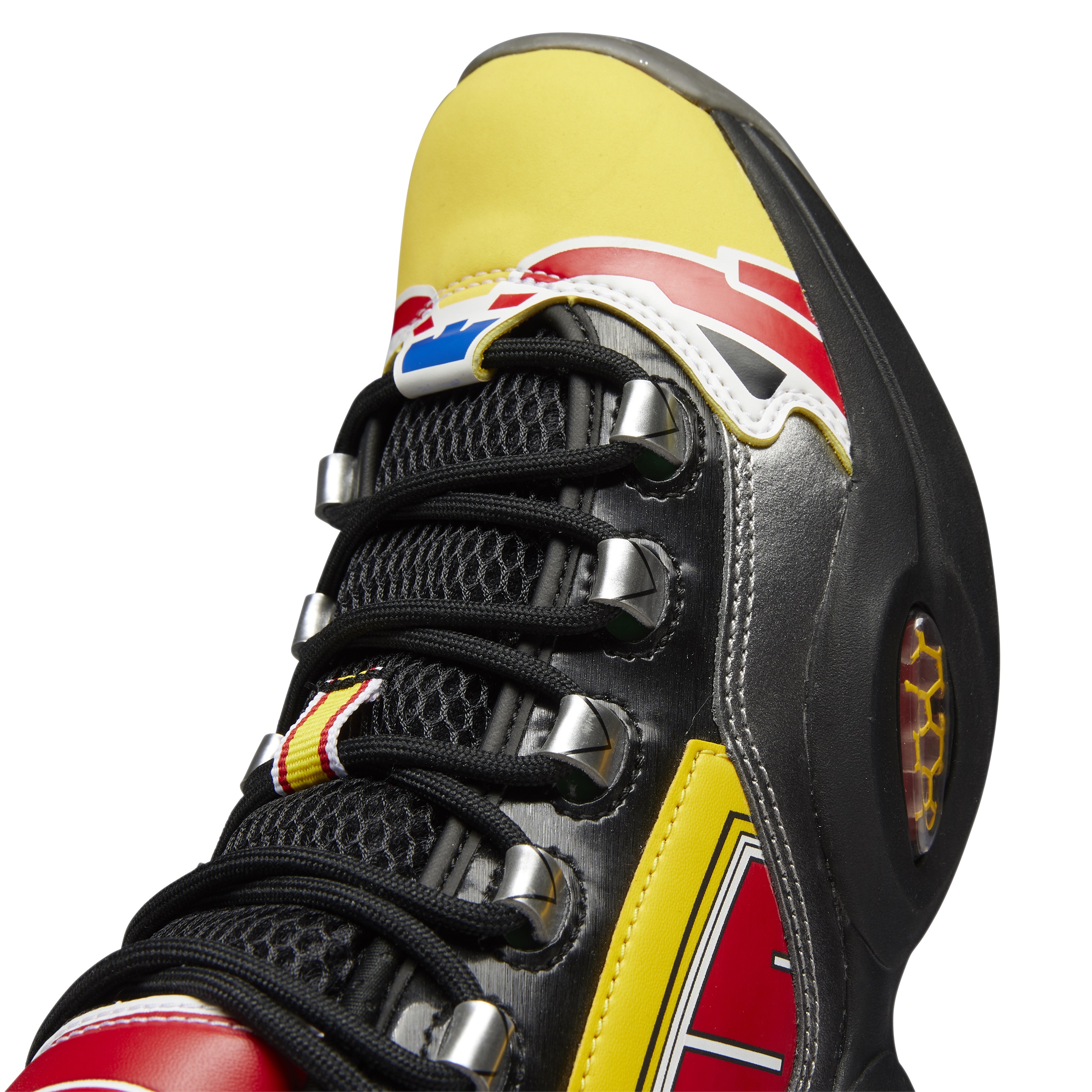 • Question Mid Megazord ($180) – The Question Mid Megazord features a range of markings to represent the Zord, from the black and yellow logo on the tongue that resembles Zord eyes to the V-printed eyelets that emulate Zord teeth. The shoe also includes a question mark on the right toe with an M for Megazord.