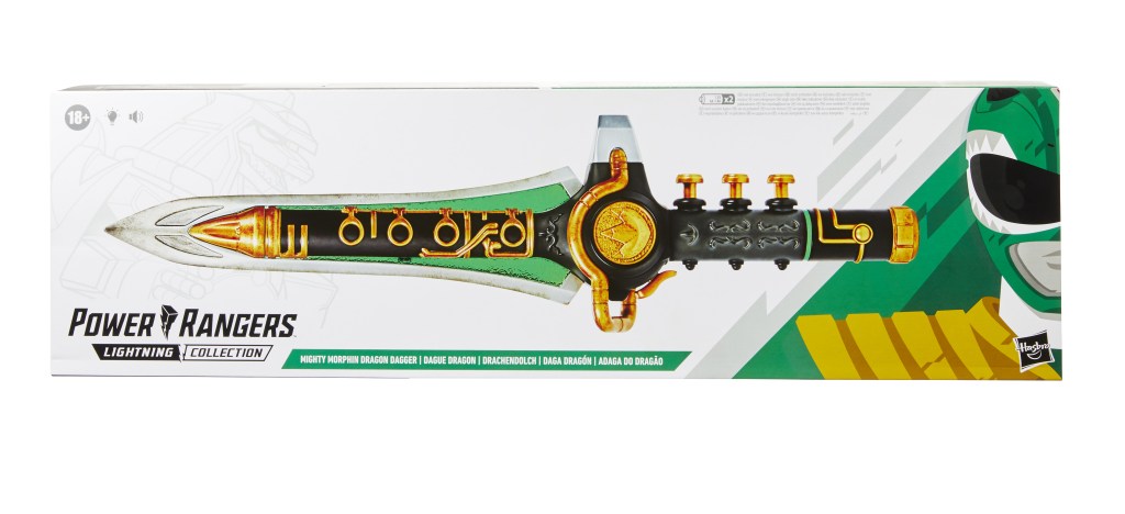 Hasbro’s premium LIGHTNING COLLECTION is going beyond its premium line of figures with role play products like the POWER RANGERS LIGHTNING COLLECTION MIGHTY MORPHIN DRAGON DAGGER, the world’s most memorable trumpet knife, aka flute sword! Tommy Oliver used the Dragon Dagger to call the powerful Dragonzord from the sea, and he never even had to move his mouth! With this MIGHTY MORPHIN DRAGON DAGGER collectible, fans can play some sweet synth tunes, mix up the music in remix mode, or display this epic piece of POWER RANGERS history on their shelves. Ever imagined putting a trumpet knife up to your metallic helmet lips, pressing some buttons, and calling an ancient and powerful zord from the depths of the ocean? Well now you can… still imagine it, but while holding a screen-inspired replica of the iconic flute sword itself, the Dragon Dagger! Inspired by the weapon/instrument from MIGHTY MORPHIN POWER RANGERS, this collectible features lights and sounds with premium paint and decorative details inspired by the show, along with button-activated light and sound effects including the classic Dragonzord call. Go Go Power Rangers! Look for more collectibles in the LIGHTNING COLLECTION. Each sold separately. Available for pre-order on HasbroPulse.com and fan channel retailers nationwide in November 2021.