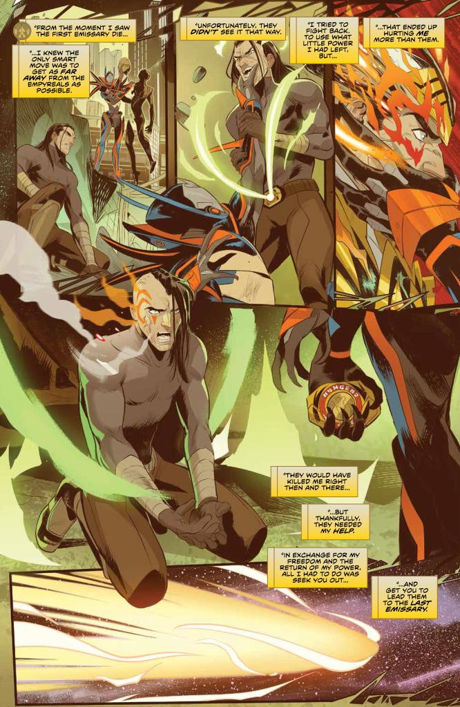 - Synopsis: The Omega Rangers try to reach the Spectrum II, but Drakkon has other plans that will cost them dearly. After the shocking events of last issue, the Empyreals add to their ranks before being called back to do their master’s bidding. As a departing gift they unleash their full might on the alien planet. If the Omega Rangers can survive, they’ll find themselves stranded without hope of survival. Can they fight their own insecurities and deepest fears long enough to find a way out?