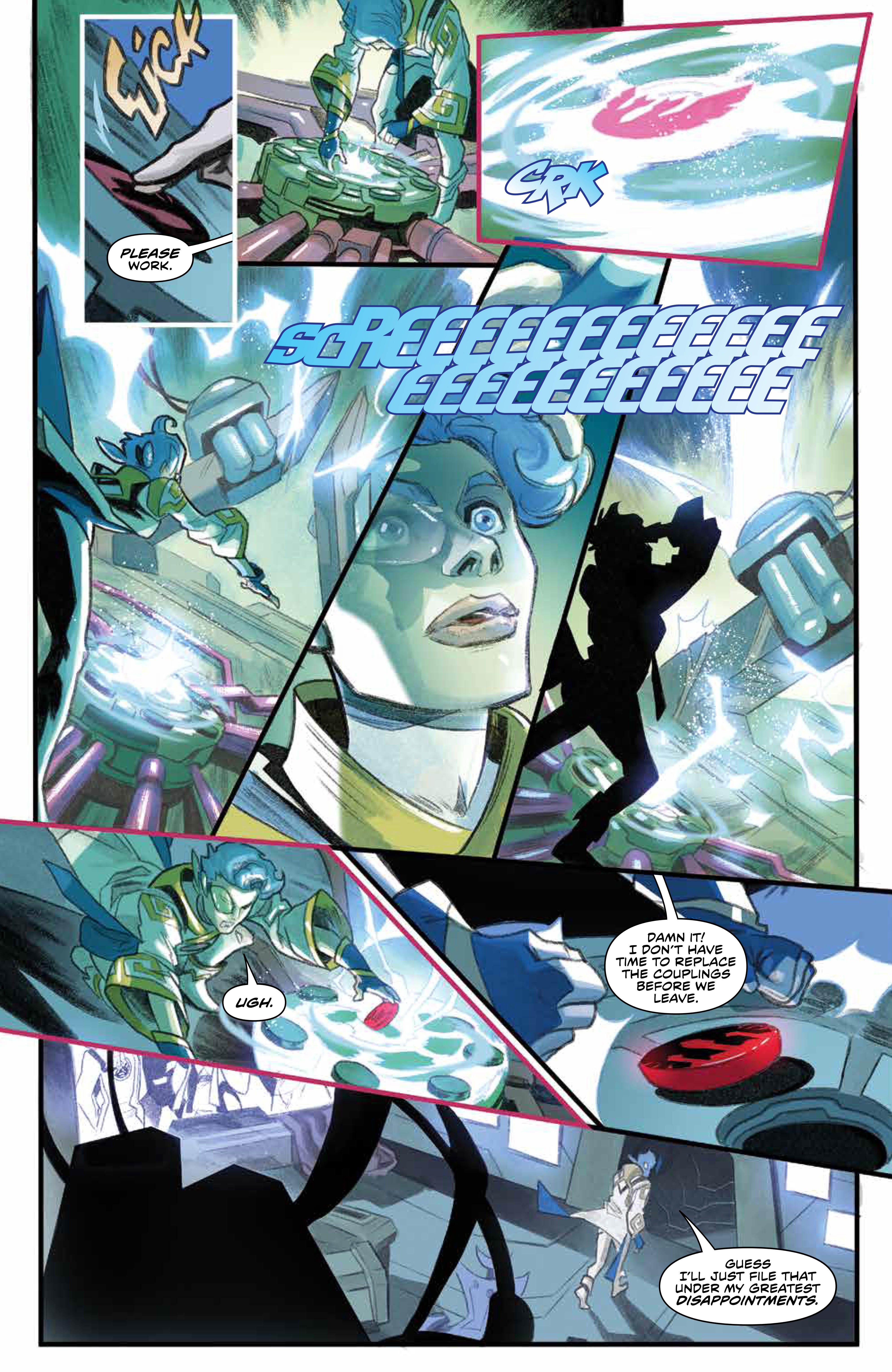Story – 3 out of 5: The problem here is that Nicole Andelfinger is seemingly trying to introduce too much into this first issue, and the art is not helping to clear things up. What are Masterforges? How are Xev and Telosi related? Brothers? Friends? Boyfriends? Can’t really tell at this point. Are the comet creatures related to the ones in the Grid? Is the giant monster supposed to be Master Vile? Granted, I’m sure these questions will all be answered in future issues, but it all makes this issue really confusing.