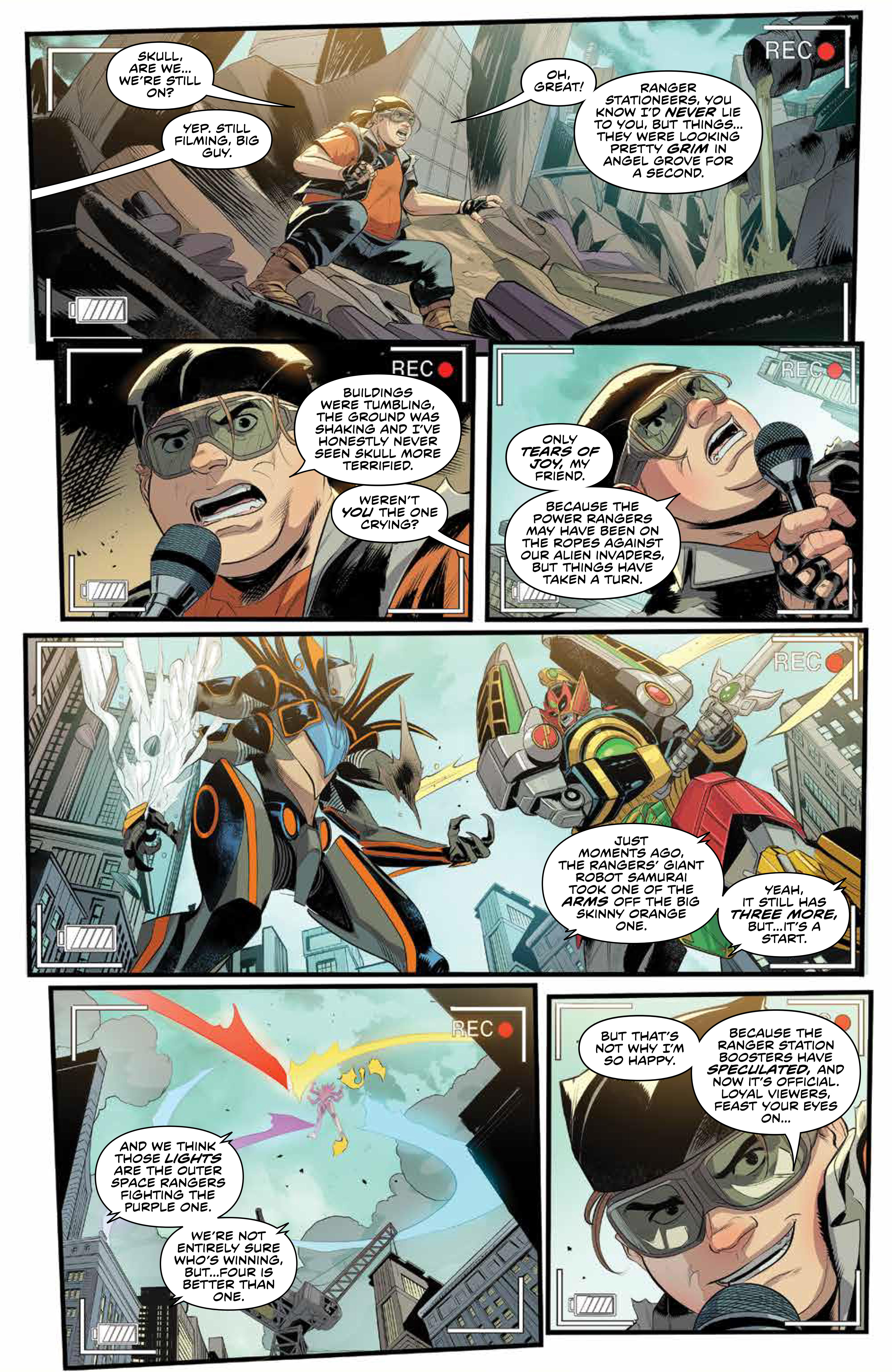 Art – 5 out of 5: This time out, Francesco Mortarino handled the part of the story featuring the Rangers fight with the Empyreals, while Marco Renna handled the fight on the moon. Not sure if this was always the plan, or if Mortarino was running behind schedule, but it works. Their styles are different enough that you could tell the difference, but similar enough that the change wasn’t jarring. Mortarino puts a lot of neat details in the Zord fights, and Renna does a great job with the moon fight. Although, it is weird seeing Zedd taking hits in a fight, since we really only ever saw him in 2 fights on the show (against Tommy in MMPR Season 3, and against everyone in Dino Fury), and, despite losing one of them, I don’t really recall him taking and actual hits.