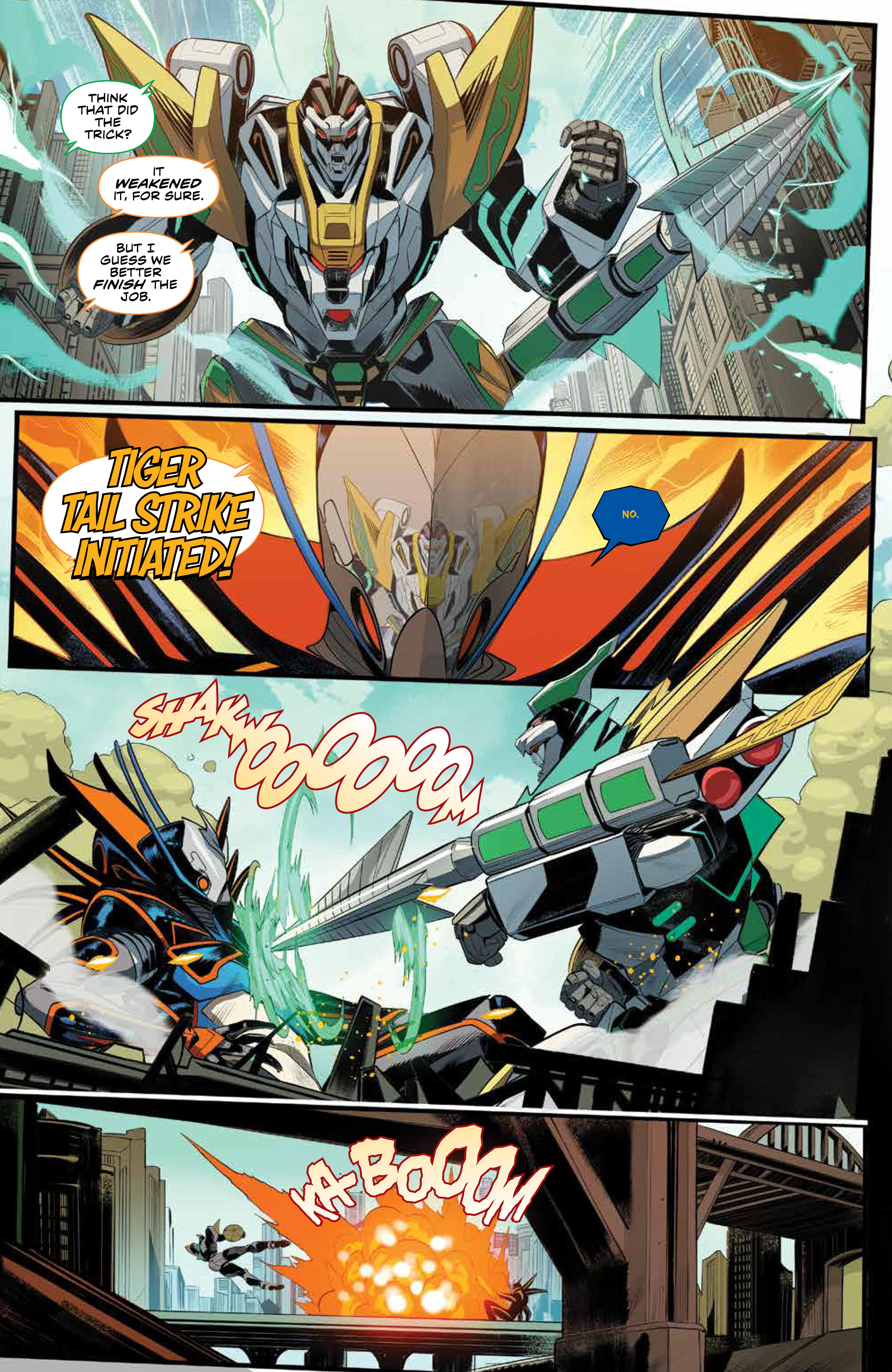 Story – 3 out of 5: Don’t get me wrong. This was a fun read with some pretty epic moments. But, this issue felt like padding. The Rangers are almost defeated, so we get yet another new Zord combo that lets the Rangers temporarily get the upper hand. Then, as the Empyreals are almost defeated, they end up with a new combo too, which we didn’t know they could do, that allows them to regain the upper hand, and basically put us right back where we were. Meanwhile, other than Zedd finally believing Zordon, and helping him fight Zartus, nothing was really accomplished here either. And what has happened to Grace, Zelya, the SFF, and the others? After feeling like we were really getting some story progression in the last few chapters, this issue really feels like we slammed on the brakes. Hopefully this is corrected in Mighty Morphin 16. Oh, and since we are being nit-picky, why would you call an attack “Tiger Tail Strike” when it is basically the Dragonzord’s tail performing the attack?
