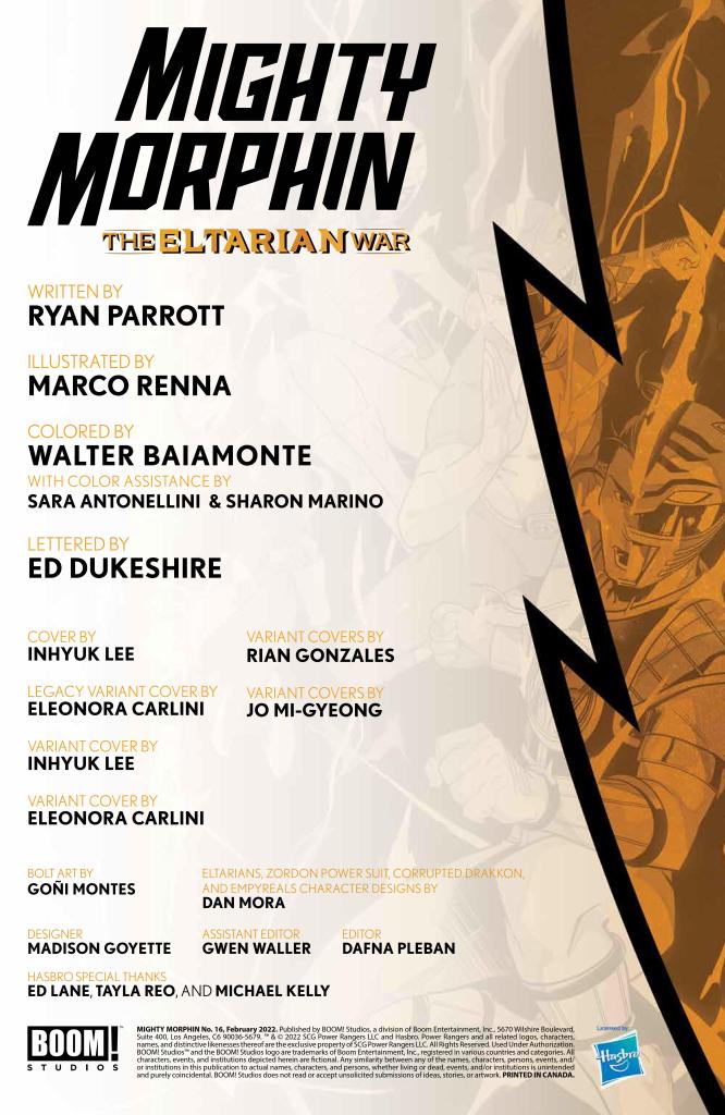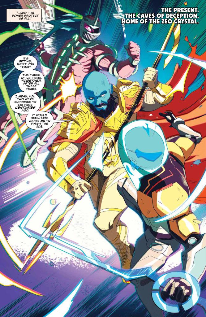 Story – 3 out of 5: This issue was literally just 2 fights. It would have been nice to see what has happening with Sentry Force Four (have they surrendered?), or Grace, or the villains. I do like, however, that it was not the Rangers who stopped the planet “resetting” Empyreals. Even with new Zord combinations, and Drakkon bringing in the Horrid, they were still fairly easily dealt with. It took an Emissary, on that higher power level, to finally finish things. I also like that it was the Zeo Crystal, Zartus’ main goal, that turned out to be his undoing.