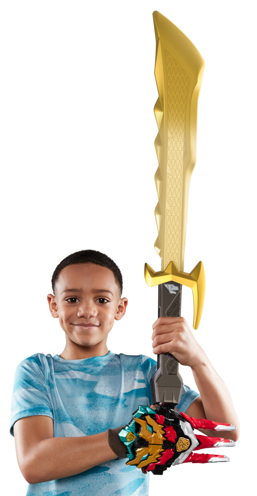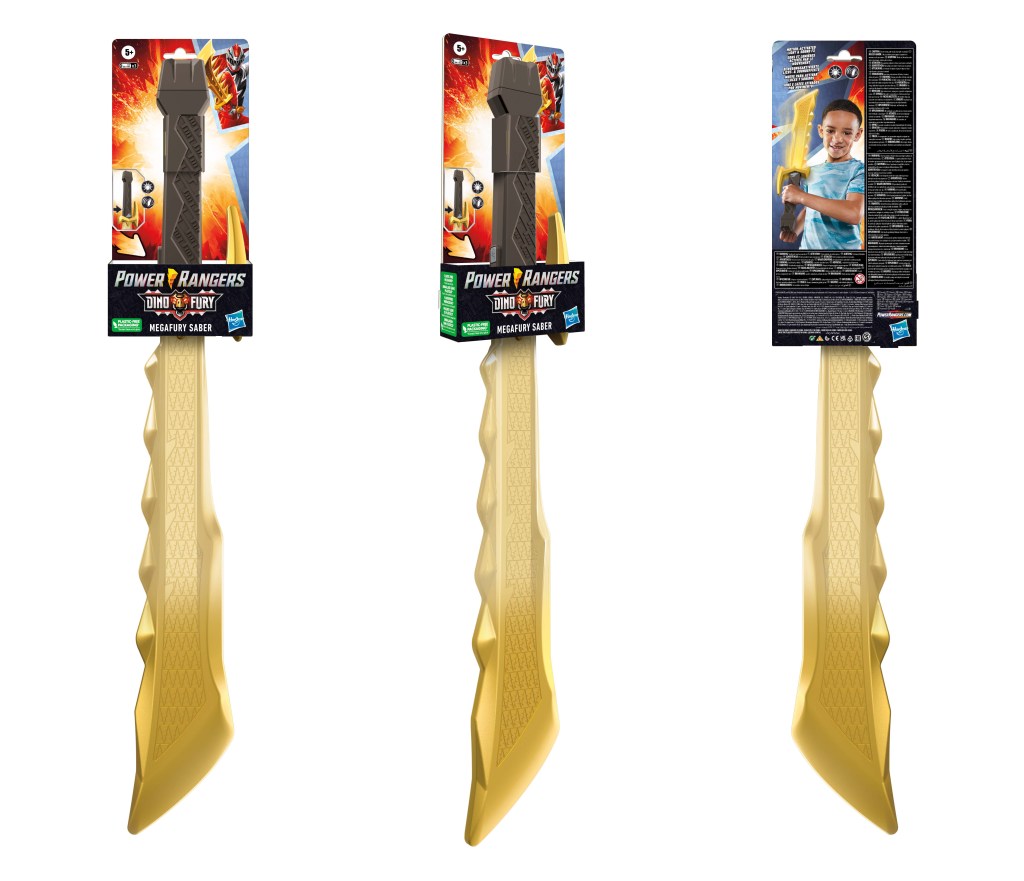 When an army of powerful alien beings is unleashed on Earth threatening life as we know it, a brand-new team of POWER RANGERS, fueled by the pre-historic power of the dinosaurs, are recruited to deal with the threat in the POWER RANGERS DINO FURY TV series! The POWER RANGERS DINO FURY MEGAFURY SABER is an electronic toy that features color-changing LEDs, and motion-activated light and sound effects inspired by season two of POWER RANGERS DINO FURY. When kids swing with the Megafury Saber, or if they press the button on the handle, the sounds and lights will trigger, allowing kids to imagine their favorite Dino Fury Ranger wielding the Megafury Saber and taking on the evil Sporix Beasts! Unique sound effects can also be triggered by pressing the Megafury Saber handle to the Dino Knight Morpher. With the Megafury Saber, anyone can be a Ranger! Find other POWER RANGERS figures and gear, including POWER RANGERS DINO FURY toys, to expand the morphinomenal action. Each sold separately. Available now at most major toy retailers nationwide.