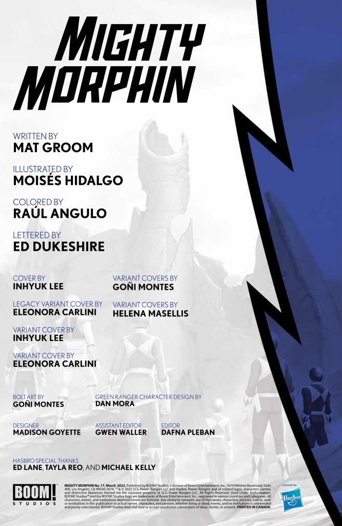 Story – 4 out of 5: For those that may not know, before he became a big time comic writer, Mat Groom and his buddy Michael started the Ranger Danger podcast, in which they watch and review every episode of Power Rangers. While still doing the podcast, he has also worked with Kyle Higgins on Rise of Ultraman for Marvel Comics, Tales of the Dark Multiverse: Teen Titans – The Judas Contract for DC Comics, Supermassive for Image Comics (which he also worked on with Ryan Parrott), and his first solo written work, Self/Made, also for Image Comics. So, believe me when I say that he has the knowledge, and pedigree, to take over Mighty Morphin from Ryan Parrott. And he really doesn’t skip a beat here, picking up from the end of Eltarian War and moving forward with the story. However, I can’t help but get a Zeo vibe from this issue. The story begins in the remains of the Command Center, the Rangers are worried now about the Power Chamber under the Command Center, and there is a new villain introduced with what you might call a machine empire of sorts.