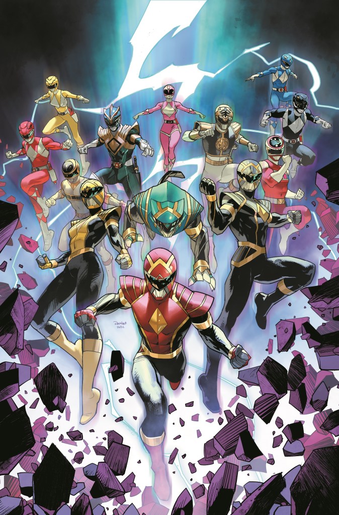 LOS ANGELES, CA (August 5, 2022) – MIGHTY MORPHIN POWER RANGERS #100 is the celebratory and shocking 100th issue from acclaimed writer Ryan Parrott (Mighty Morphin Power Rangers/TMNT), series artists Marco Renna and Moisés Hidalgo, as well as the return of all-star guest artists Dan Mora, Hendry Prasetya, Daniele di Nicuolo, Eleonora Carlini, Francesco Mortarino, and Miguel Mercado.