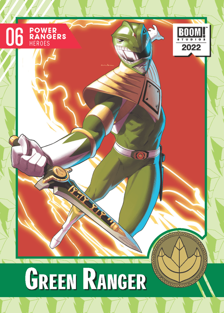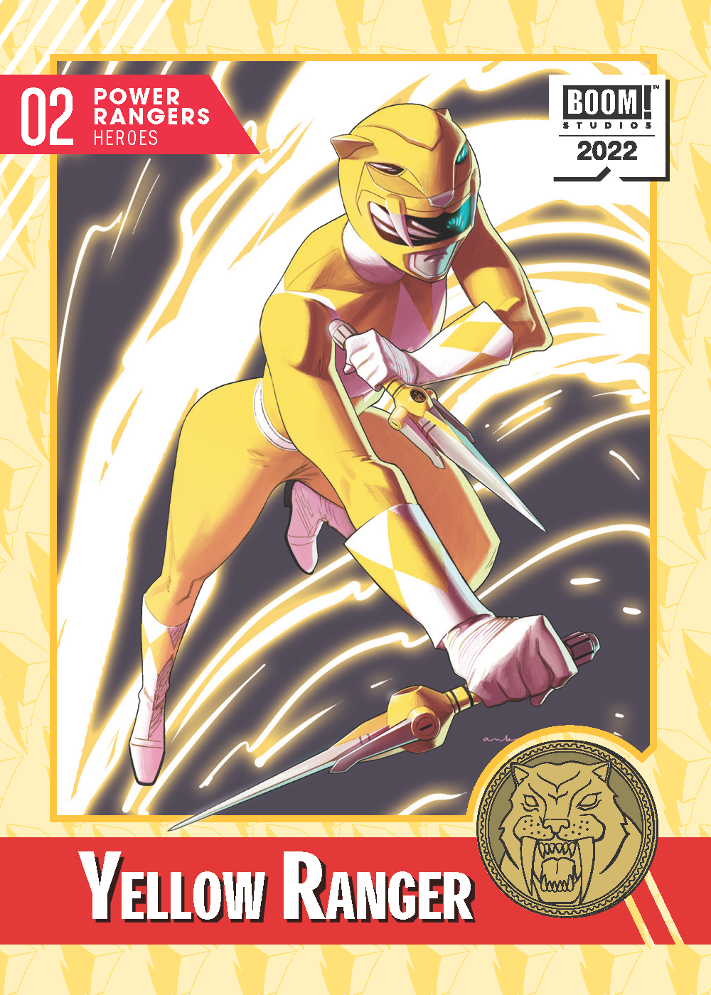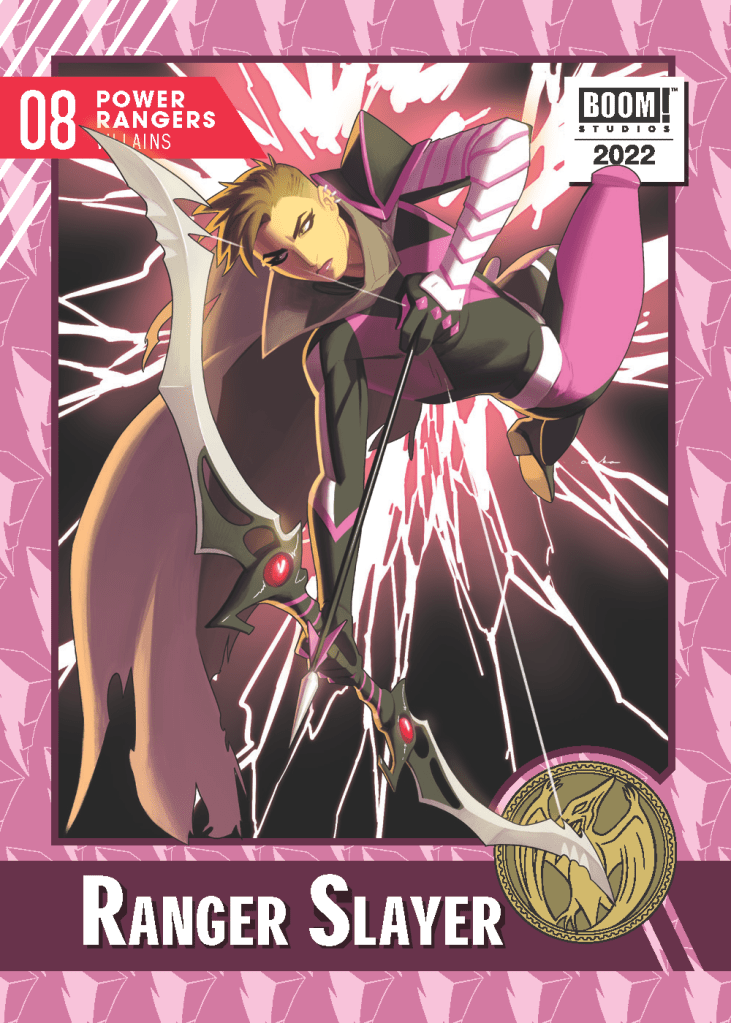 The trading cards features art by highly acclaimed illustrator Kris Anka with design by Dylan Todd, and include cards for heroes Red Ranger, Yellow Ranger, Blue Ranger, Black Ranger, Pink Ranger, and Green Ranger, as well as villains Rita Repulsa, Ranger Slayer, Lord Zedd, and Lord Drakkon.