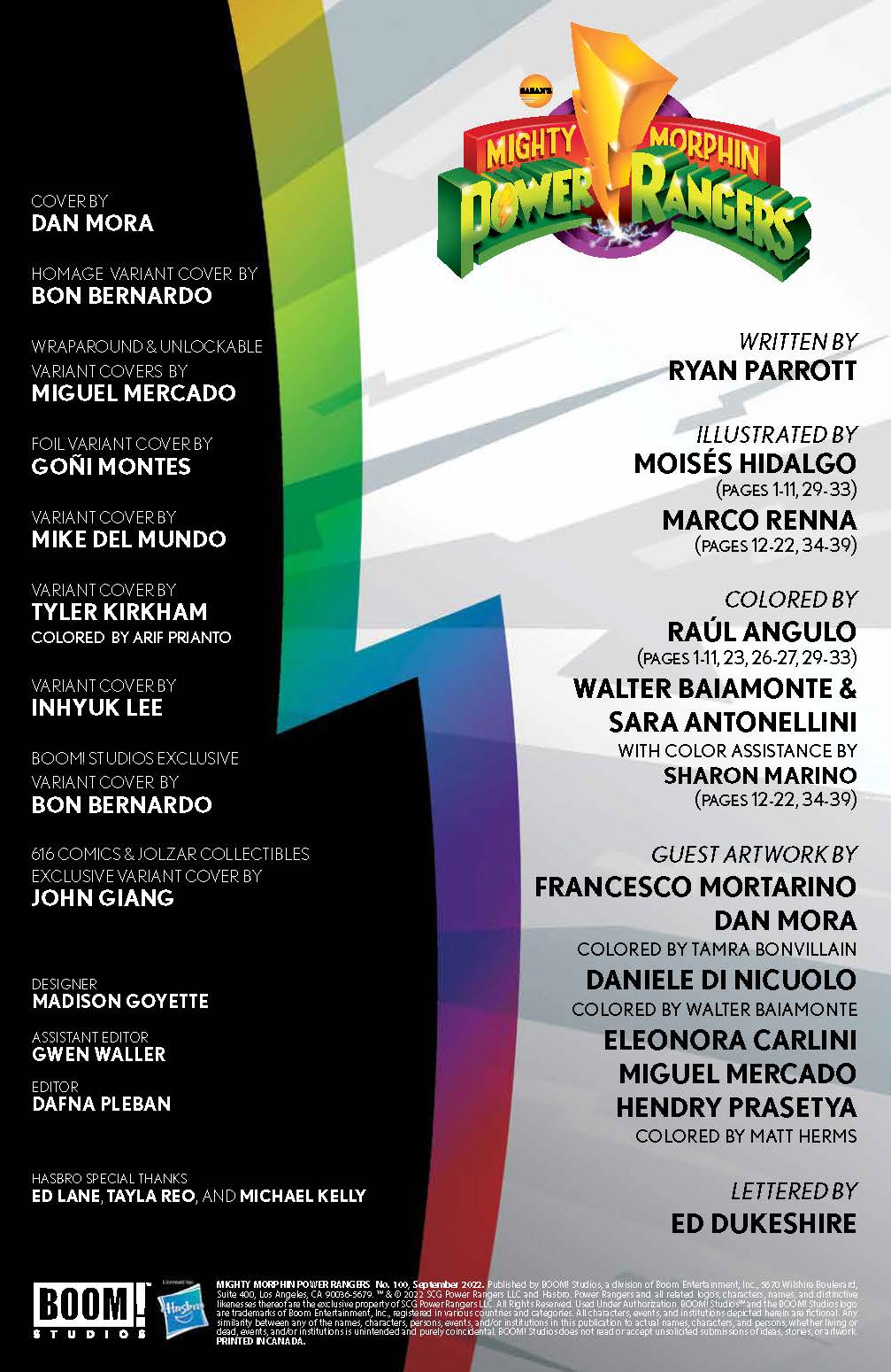 In the spirit of fan favorite issues like the landmark X-Force #1, each copy of Mighty Morphin Power Rangers #100 also contains 1 of 10 collectible trading cards, with art by Kris Anka, and designs by Dylan Todd, featuring your favorite Rangers and villains and an exclusive art print!
