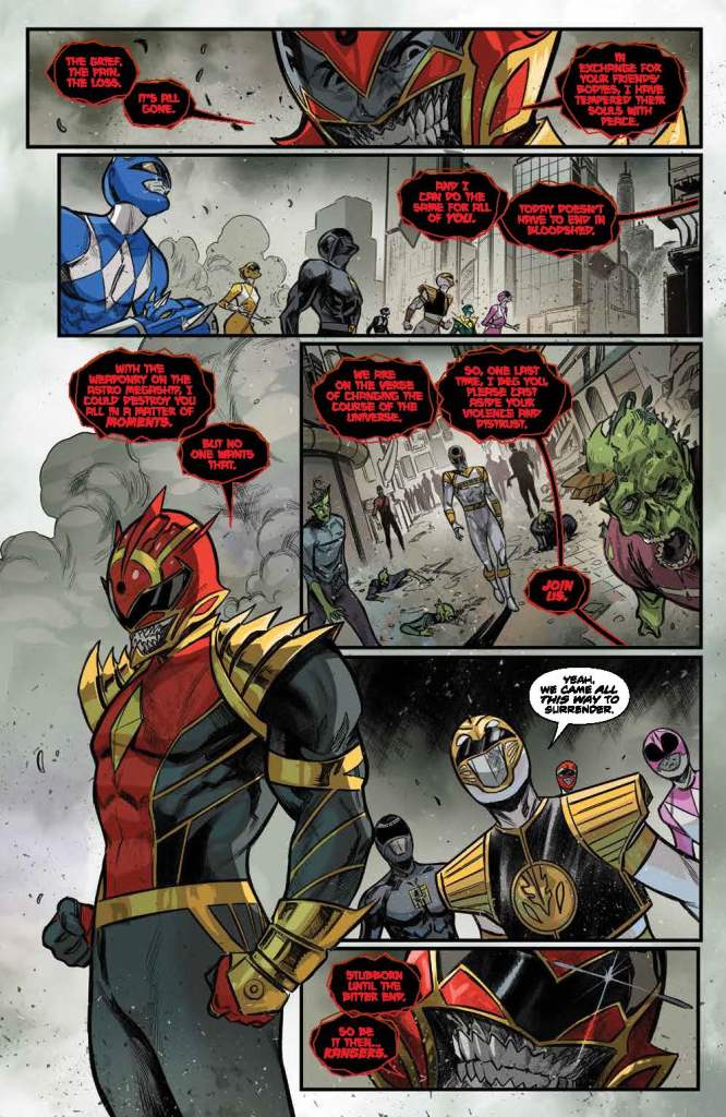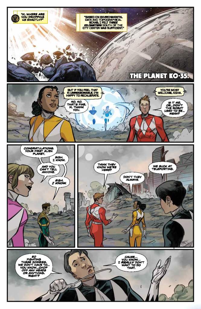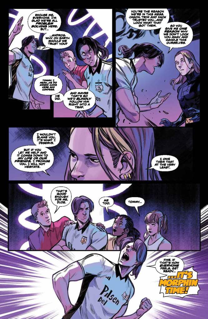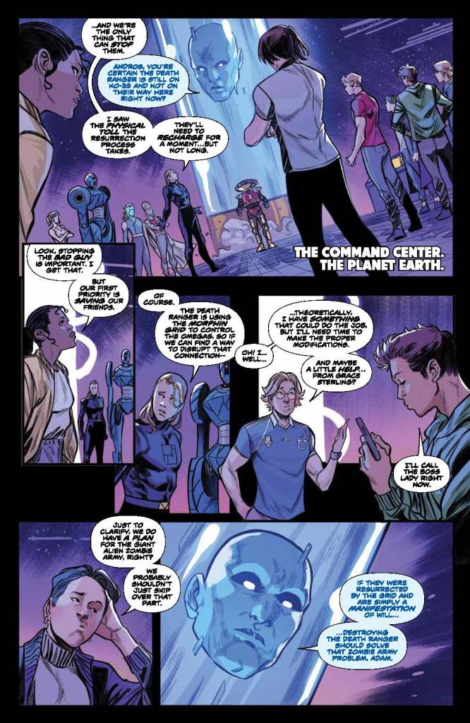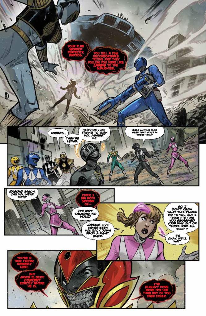 I’m glad that it was explained that Jason was disconnected from the grid, because it wasn’t clear in the art. This is a great setup for Zeo, explaining why Zack and Trini don’t return, but Jason is able to come back as the Gold Ranger. And Trini taking over as the Red Omega Ranger is deserved as well. It seems to be fairly easy to redistribute the Omega Powers, doesn’t it? And ending the whole thing with Jason’s mom’s voicemail is not only a great callback to earlier in the issue, but also a great way to end things.