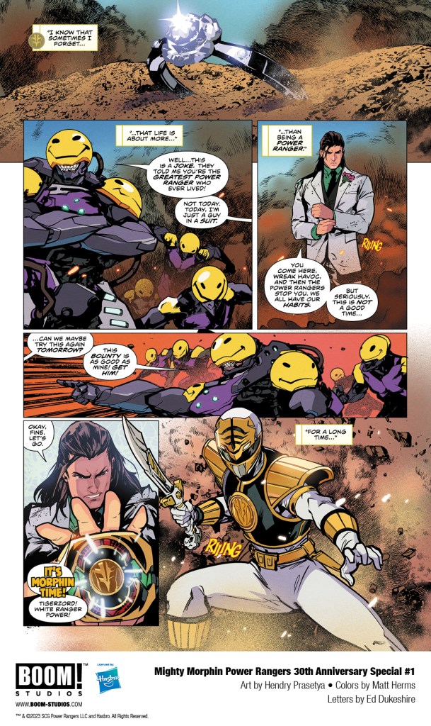 Los Angeles, CA (July 31, 2023) — Continuing the 30-year legacy of Mighty Morphin Power Rangers, BOOM! Studios, under license by toy and game company, Hasbro, revealed today a first look at the MIGHTY MORPHIN POWER RANGERS 30TH ANNIVERSARY COMIC SPECIAL.