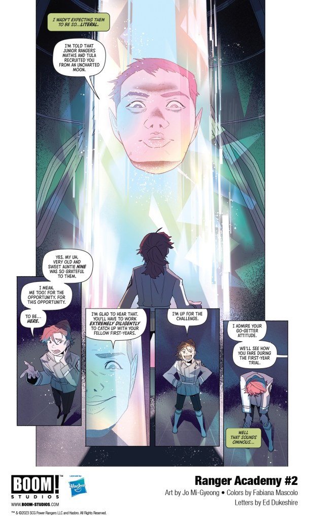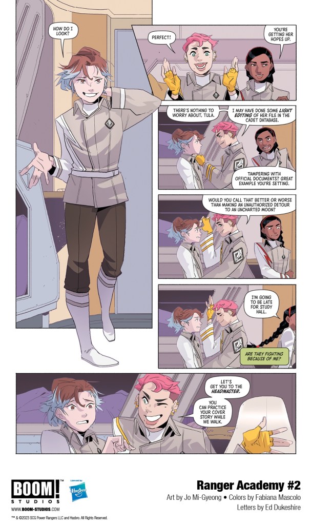 LOS ANGELES, CA (October 6, 2023) – If you had a chance to join the POWER RANGERS, would you? Maria Ingrande Mora (The Immeasurable Depth of You), artist Jo Mi-Gyeong (Eve: Children of the Moon), and colorist Fabiana Mascolo (Alice Ever After) follow 13-year-old Sage as she continues to ponder that very question in this first look from RANGER ACADEMY #2!