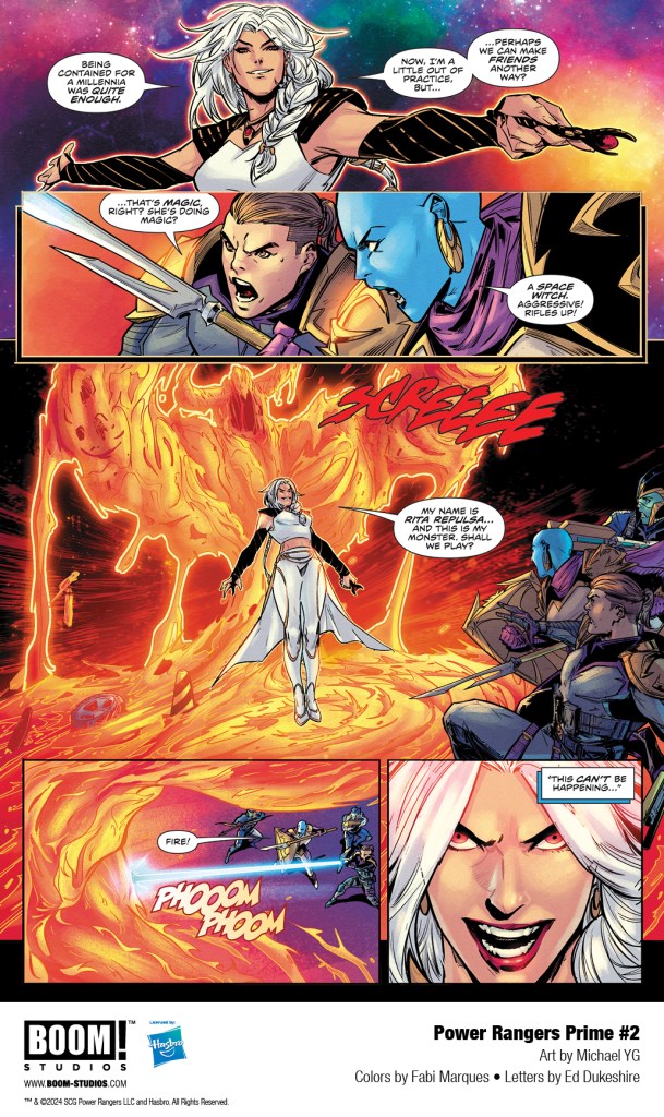 LOS ANGELES, CA (November 19, 2024) – BOOM! Studios, in collaboration with leading toy and game company Hasbro, today revealed a first look at POWER RANGERS PRIME #2. Groundbreaking POWER RANGERS writer, and scribe behind Darkest Hour Melissa Flores, along with acclaimed artist Michael YG (Iron Fist), colorist Fabi Marques, and letterer Ed Dukeshire ushers in a new era into the Rangers Mythos with the new ongoing series POWER RANGERS PRIME! Continuing December 2024.