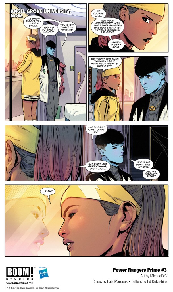 LOS ANGELES, CA (December 16, 2024) – BOOM! Studios, in collaboration with leading toy and game company Hasbro, today revealed a first look at POWER RANGERS PRIME #3. Groundbreaking POWER RANGERS writer, and scribe behind Darkest Hour Melissa Flores, along with acclaimed artist Michael YG (Iron Fist), colorist Fabi Marques, and letterer Ed Dukeshire ushers in a new era into the Rangers Mythos with the new ongoing series POWER RANGERS PRIME! Continuing January 2025.